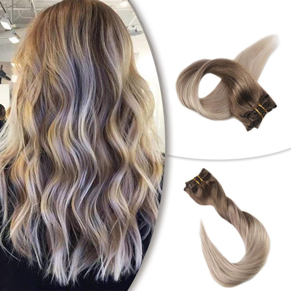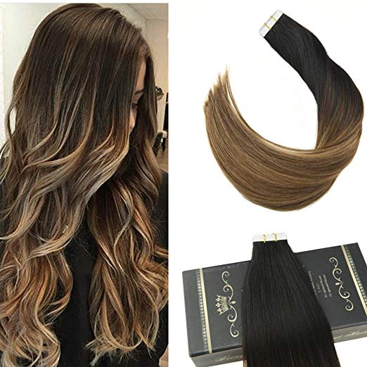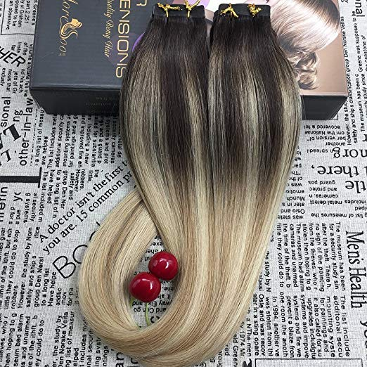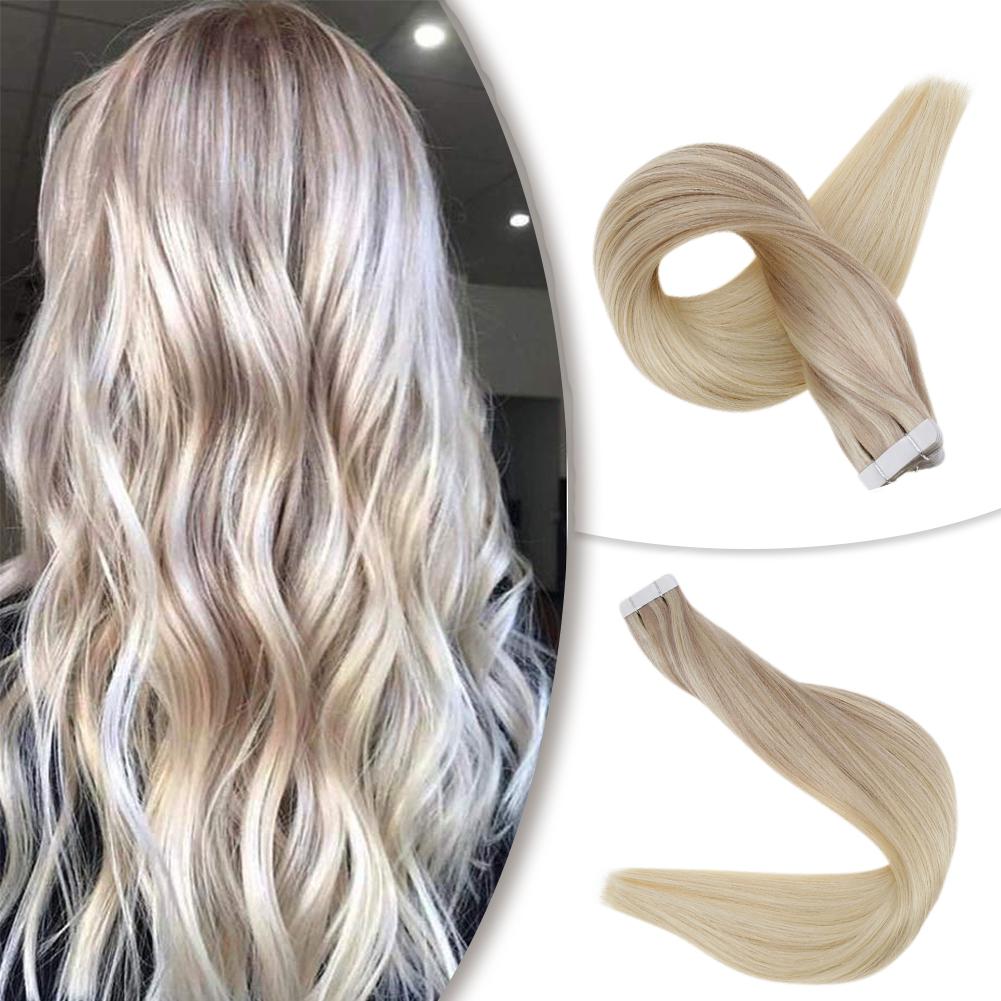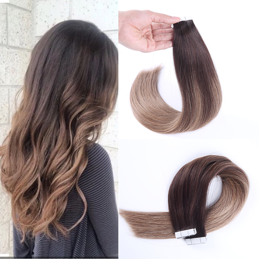 Extensions de cheveux naturels 100% humains avec bande invisible, ombre russe